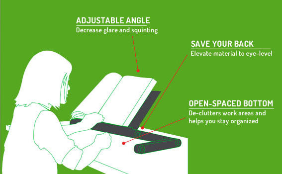 The best adjustable height and angle ergonomic reading stands. The perfect adjustable height book holder - raise books to eye-level to prevent hunching. Adjustable angle reading stand reduces glare. The best adjustable height and angle textbook stand – holds even the heaviest textbooks in a more comfortable position.