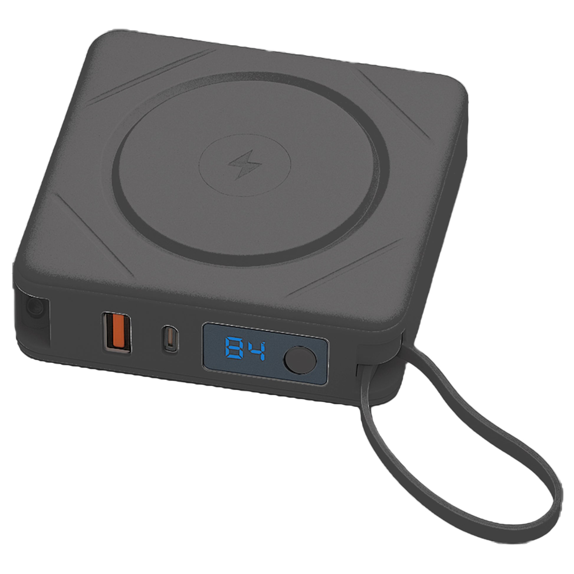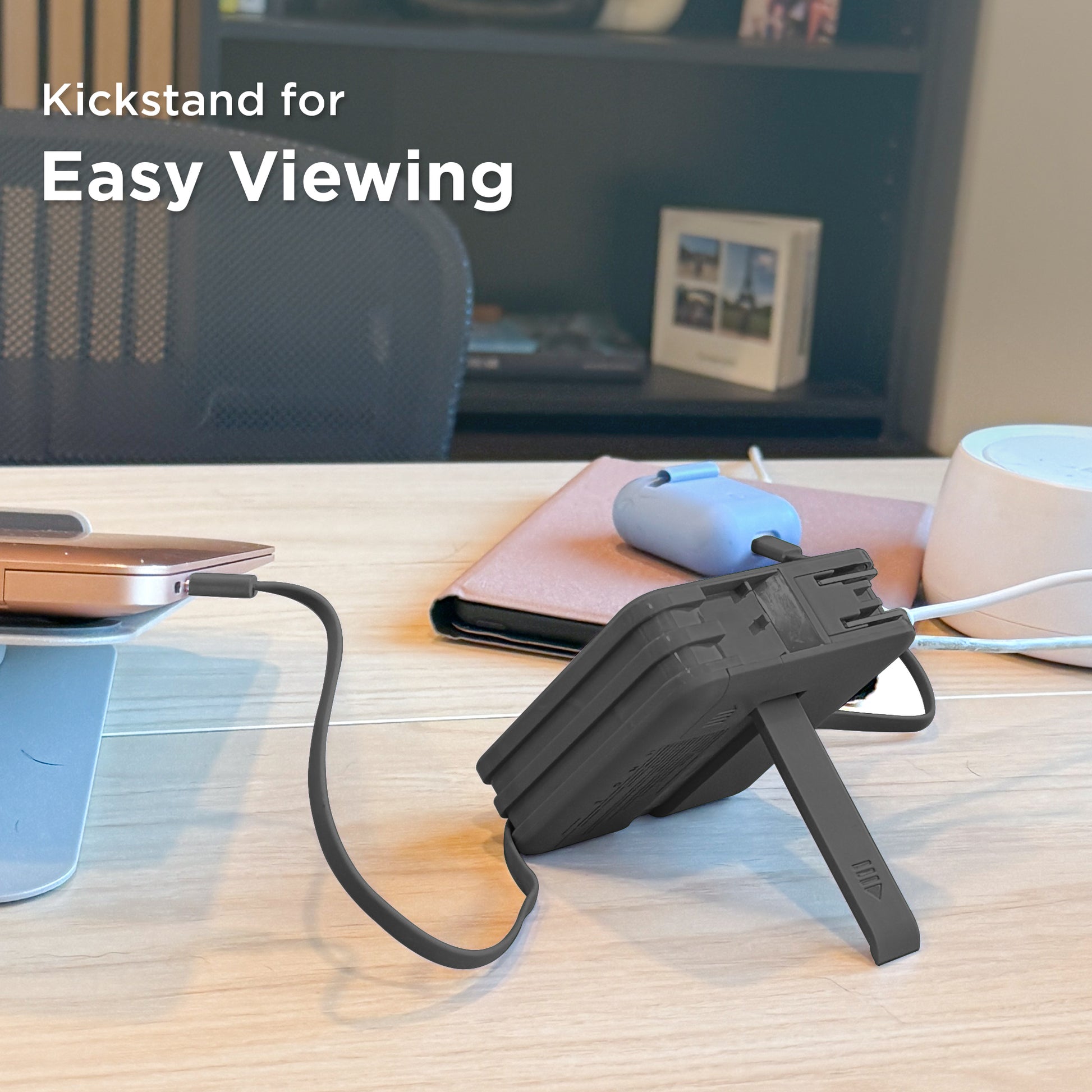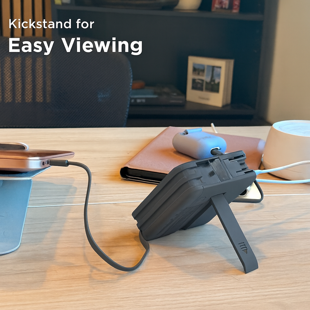 The Uncaged Ergonomics 7-in-1 Power Bank is the ultimate portable charging hub. With ETL certification, you can trust its safety and performance wherever you go. Featuring 20W USB-C PD fast charging, 15W magnetic wireless charging, built-in Lightning & USB-C cables, a USB-A port, AC plug, and dual kickstands, it powers up to 5 devices at once—at home, in the office, or on the move.