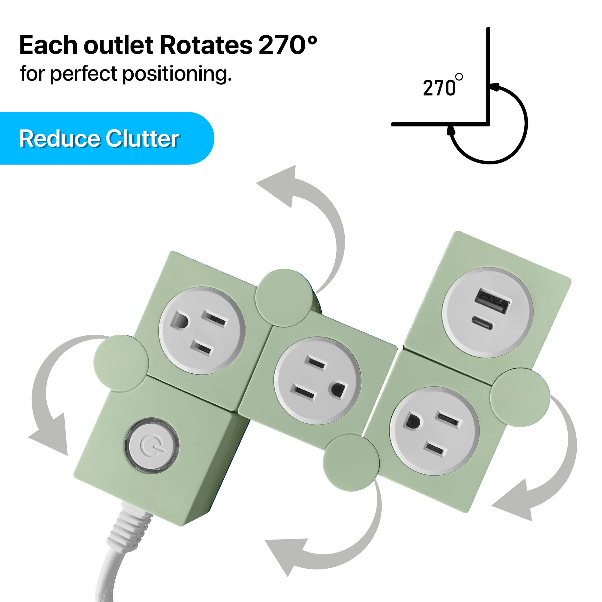 Bend it. Power it. Charge it. The Flexible Power Strip 2-Pack delivers total versatility with 3 grounded outlets, a 30W USB-C fast-charge port, and a durable 14-gauge cable. Designed to twist and curve around furniture, walls, and corners — this flexible extension cord keeps your space powered, tidy, and clutter-free.