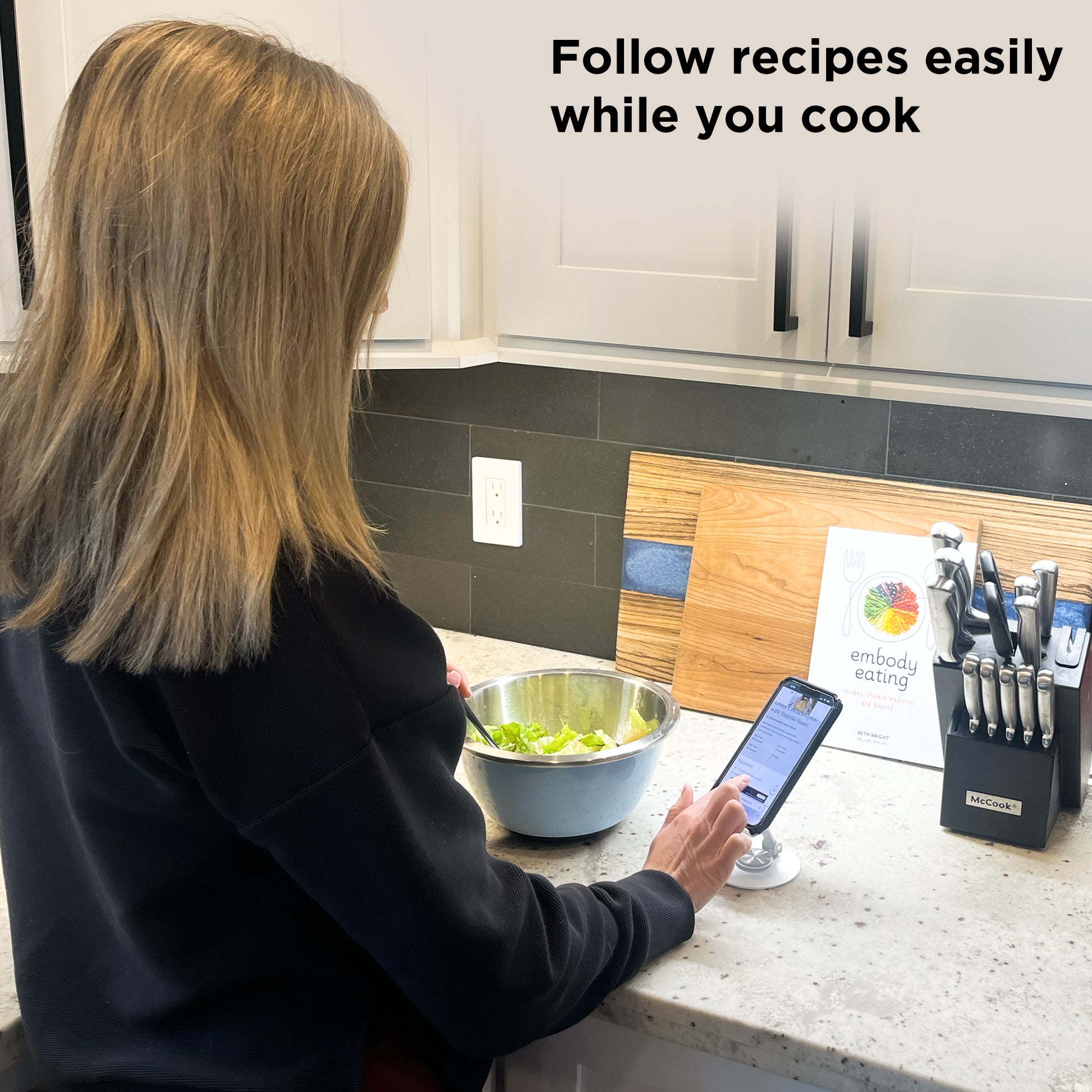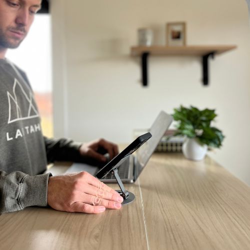 Built for convenience and crafted for durability, our swivel phone stand adapts to your needs, offering a fully adjustable experience for hands-free comfort all day long