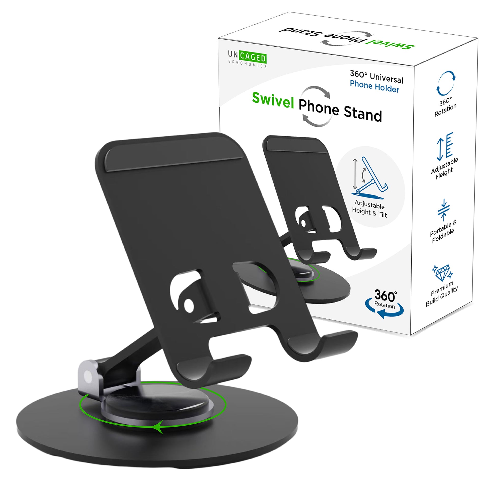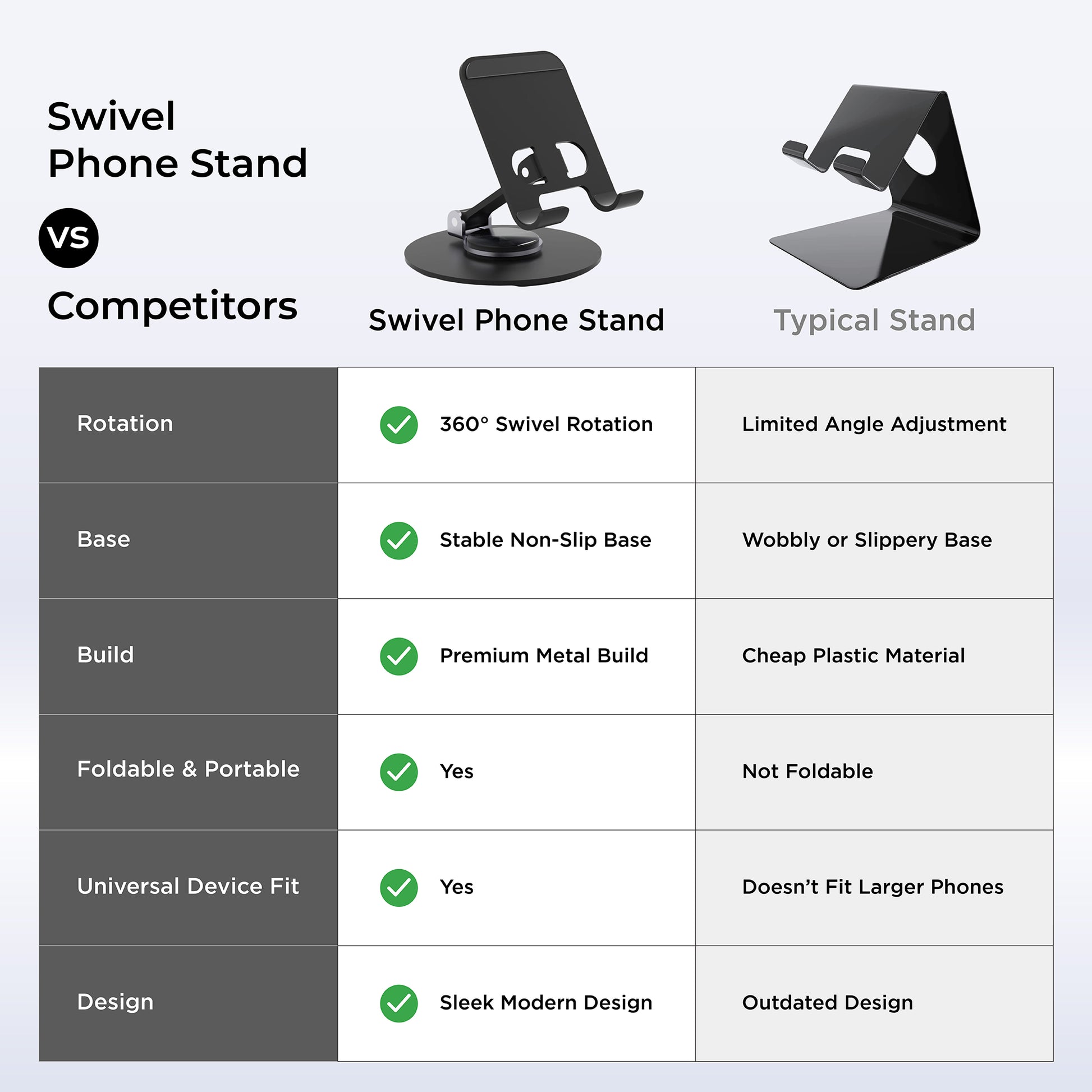 Engineered with high-quality materials, our swivel phone stand offers unmatched stability, keeping your device secure at any angle.