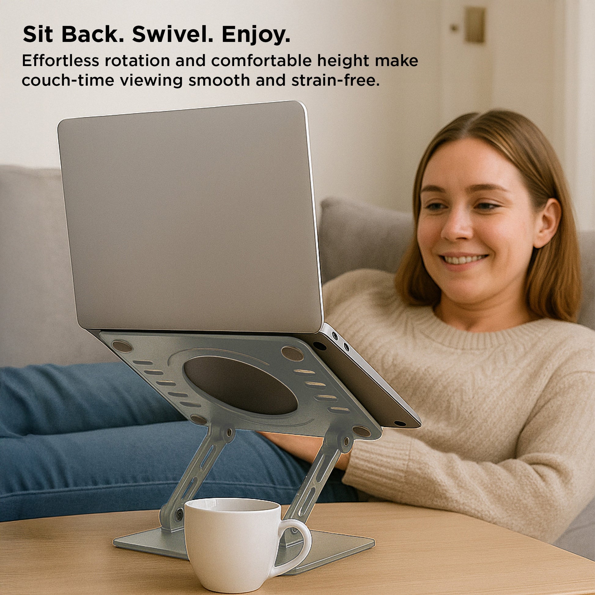 Love this laptop stand! It is absolutely perfect for what I need. I sit on different sides of my desk and it’s just a quick swivel to get my computer in the right place. The stand is solid and sturdy. Holds my MacBook perfectly. This has been an excellent purchase and I highly recommend this stand.